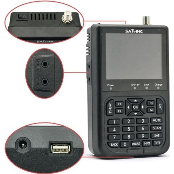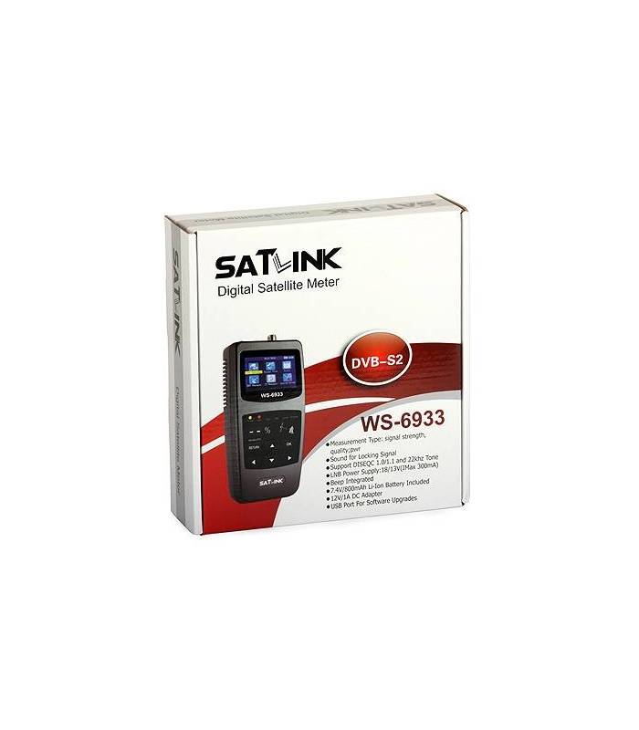 Temps de réponse ultra rapide pour trouver le satellite souhaité. Original Satlink WS-6933 détecteur de Satellite DVB-S2 Satlink détecteur de Satellite numérique compteur WS 6933 DVB-S2 récepteur de télévision par Satellite Pointeurs Satellites WS6933 Pointeur Satellite Pour Transpondeurs DVB-S/DVB-S2 HD Noir Application Pointage Antenne CANAL Temps de travail maximal de 3 heures. Dvbs2 pour parabole satellite Finder , Finder satellite Satlink WS-6933 Localizador De Satelites DVB-S/S2 - RF Technologies De type LNB universel et bande Ku., DiSEqC 1., 0, 1., 1 pour jusqu'à 16 LNB Calcul automatique de l'angle azimut et de l'angle d'élévation (après avoir entré les coordonnées de localisation). Pointeur satellite pour transpondeurs DVB-S et DVB-S2 HD (950 - 2150 MHz). Grâce au WS-6933, vous allez pouvoir pointer avec certitude et facilement le satellite de votre choix et visualiser directement la qualité/signal de réception sur son écran Pointeur professionnel combo satellite et terrestre affichage ecran manuel et OSD dispo en francais Outil d'édition satellite permettant d'afficher une liste des satellites et transpondeurs.